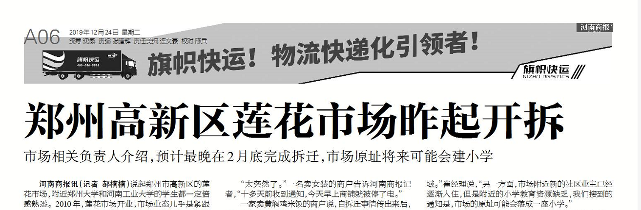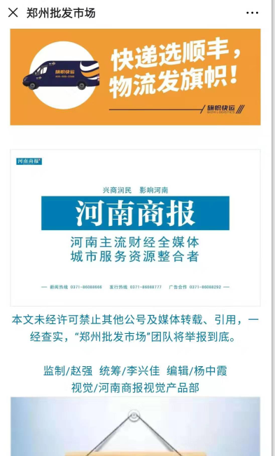 據(jù)調(diào)查,旗幟快運(yùn)在中原物流業(yè)內(nèi),具有良好的口碑和 的服務(wù)。例如,停發(fā)賠付三倍、 接貨、限時(shí)送貨、不辦卡也代收、代收提貨后十二小時(shí)到賬、物流快遞化等等都是旗幟快運(yùn)的特色服務(wù)。此次跟河南商報(bào)的合作,旗幟快運(yùn)就是為了加大品牌推廣力度,想要為社會(huì)謀福利,滿足社會(huì)多元化的物流需求,提高 物流新時(shí)代的發(fā)展,讓物流擁有快遞般的服務(wù)。