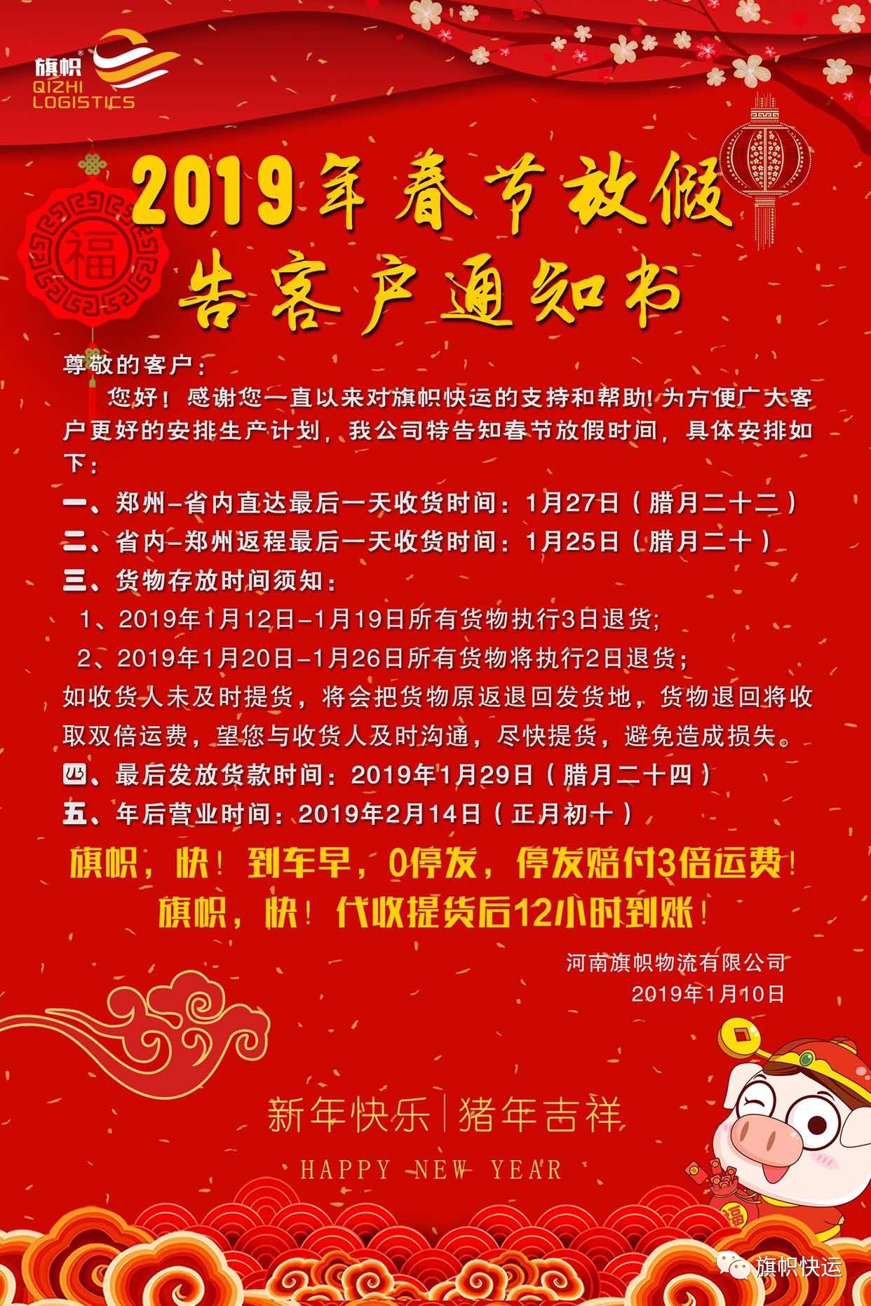 2019年新春放假告客戶通知書